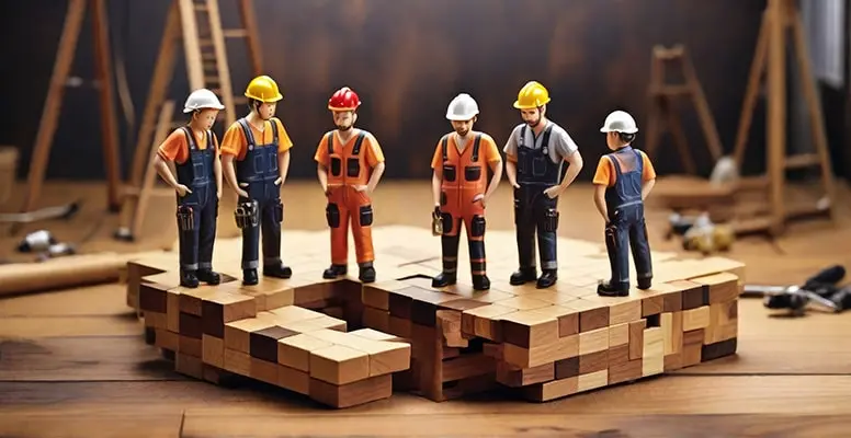 دانلود عکس با کیفیت کارگران مینیاتوری بر روی پازل چوبی